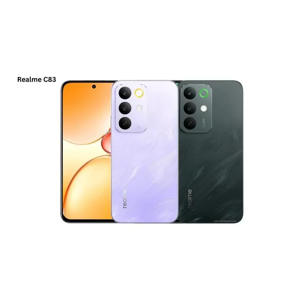 Include latest Android 14, Chipset Mediatek Dimensity 6300 (6 nm), CPU Octa-core (2x2.4 GHz Cortex-A76 & 6x2.0 GHz Cortex-A55), GPU Mali-G57 MC2, An excellent choice for photographers seeking to improve their mobile shots. To capture images and 4k video. With a great aperture, which allows light to pass through it, on the camera side possibilities feature, the Realme C83 comes with a classic Dual-camera setup with a 32 MP, f/1.9, 27mm (wide), 1/3.1", 0.7µm, PDAF Auxiliary lens camera with LED flash. There is a 8 MP, f/2.0, 25mm (wide), 1/4.0", 1.12µm single selfie camera on the front including 1080p @30fps, 1920×1080 pixels