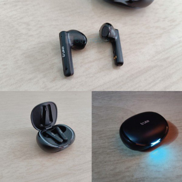 There are 20 RGB LED lights surrounding the lid. On the front, there is also an LED light in the shape of an X. Even the right- side earbud has a tiny RGB LED light. When you open and close the case, these lights activate. Unfortunately, these lights cannot be altered. The buds resemble AirPods in terms of appearance, but with Truke branding. They have an open-ear design, so you won't receive silicone tips.
