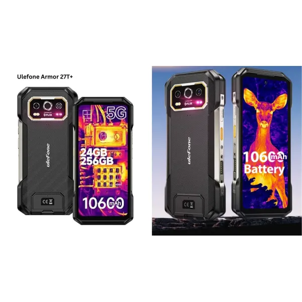 Include latest Android 15, Chipset Mediatek Dimensity 6300 (6 nm), CPU Octa-core (2x2.4 GHz Cortex-A76 & 6x2.0 GHz Cortex-A55), GPU Mali-G57 MC2, An excellent choice for photographers seeking to improve their mobile shots. To capture images and 4k video. With a great aperture, which allows light to pass through it, on the camera side possibilities feature, the Ulefone Armor 27T plus comes with a classic Triple-camera setup with a 50 MP, f/2.0, (wide), 1/1.31", 1.2µm, PDAF Back camera and 64 MP, f/1.8, (night vision), 2 infrared lights depth camera Thermal camera by Flir 3.5, 160x120 px, 9Hz with Dual-LED flash, HDR, panorama. There is a 32 MP, f/2.5, (wide), 0.8µm single selfie camera on the front including 1080p@30fps